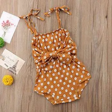 Show more Introducing the FIOMVA Newborn Infant Baby Girl Clothes Lace Halter Backless Jumpsuit Romper Bodysuit Sunsuit Outfits Set, a delightful addition to your baby girl's wardrobe. Crafted from a soft and breathable cotton blend with delicate lace, this outfit ensures comfort no matter the occasion. With its unique floral lace applique and ruffle details on both the sleeves and the hem, your little angel will look adorably chic while enjoying her playtime. Available in a variety of options, including short sleeves, sleeveless designs, and an adjustable strap feature, this romper adapts to your changing needs perfectly.