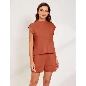 Fiona Jolin Women's Sleeveless Knit Sweater Vest Vintage Cap Sleeve Casual Mock Neck Tank Top with Front Pocket (Rust, S)