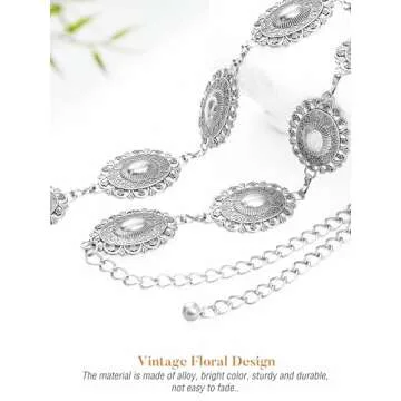 FIORETTO Metal Waist Chain Belts for Dress Western Boho Concho Chain Belt for Women Cowgirl Belts for Dress Jeans Country Concert Outfit Silver