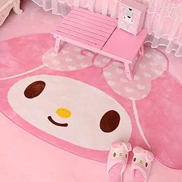 FIPPLEY Cute Cartoon Carpet Kawaii Rugs Children Girls Bedroom Mat My Melody Pink Room Decor (100cm x 160cm)