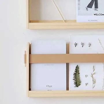 Show moreIntroducing the FIRADE Wall-Mounted Magazine Holder, a perfect blend of style and functionality designed to enhance your home or office decor. This versatile magazine rack features a unique PU leather strap design paired with a sturdy pine varnished board, making it not only visually appealing but also durable for everyday use. Its clean lines and open wire design ensure that your magazines, books, or files are always visible and accessibly organized.