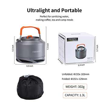 Show moreIntroducing the Fire-Maple XT2 1.3L Tea Kettle, a must-have for every outdoor enthusiast and camping lover. Designed for durability and efficiency, this kettle is constructed from hard anodized aluminum, making it not only lightweight but also exceptionally sturdy. The kettle features a sleek stainless steel handle that provides excellent grip and handling while maintaining a robust structure that’s easy to clean. Weighing a mere 302g and measuring 6.0 x 5.2 inches, it gives you the perfect combination of portability and functionality, ensuring it doesn’t add unnecessary weight to your pack.