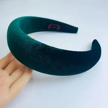 Firecolor Chic Wide Padded Headband Alice Velvet Headbands Puffy Sponge Thick Hairbands Vintage Hair bands for Women girls Trendy and Cute solid color headbands (Forest green)