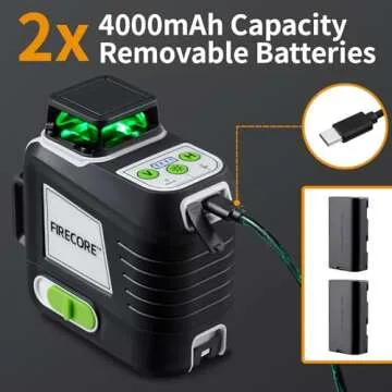 Powered by two rechargeable battery packs, each boasting a capacity of 3.7V / 4000mAh, the Firecore laser level promises over 14 hours of continuous usage. The additional Type-C charging port allows for easy recharging, so you can keep focused on your job without interruptions. This efficiency is complemented by a remote control feature, allowing you to adjust laser settings from up to 33 feet away, even through walls, greatly enhancing your convenience during tasks.