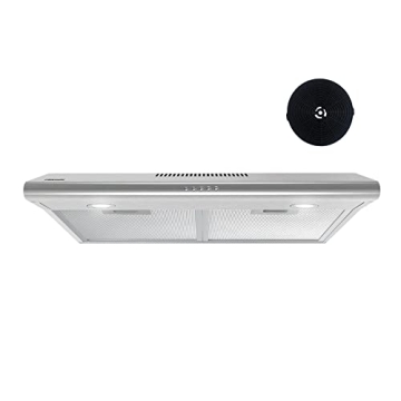 The 30 inch ductless range hood brings a blend of functionality and modern elegance to your kitchen. Designed with a sleek brushed stainless steel finish, this range hood is not only visually appealing but also highly effective at eliminating smoke, odors, and grease from your cooking space. Featuring a powerful yet remarkably quiet motor, this model allows you to work efficiently without the distraction of loud machinery. With three adjustable speed settings, you can easily manage the airflow according to...