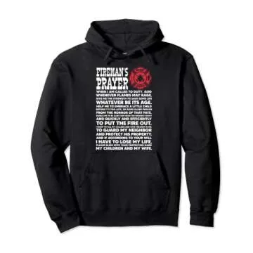 Show moreIntroduce your wardrobe to a true symbol of courage and dedication with our Fireman's Prayer Firefighter Pullover Hoodie. This premium-quality hoodie is more than just apparel; it embodies the valor and commitment of those who bravely confront the flames. Made especially for firefighters, fire chiefs, volunteers, and rescue teams, this hoodie features a unique design that displays the inspirational Fireman's Prayer, perfect for honoring the heroes who selflessly protect us. Whether you're on the job, participating in training events, or enjoying casual outings, this hoodie serves as a constant reminder of the noble spirit of firefighting.