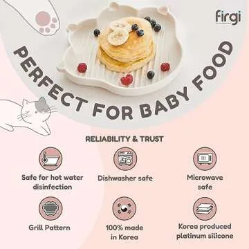 Firgi MEOW Silicone Baby Toddler Plates, Baby Feeding Essentials 100% Food-Grade Silicone Led Weaning Supplies BPA Free Toddler Soft and Durable Silicone Plate Feeding Supplies BPA Free Kids Dry Rose