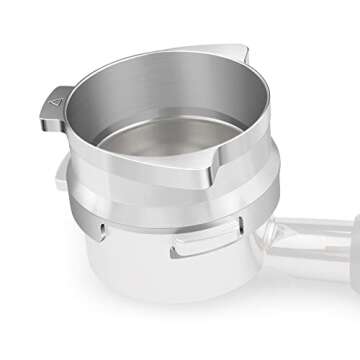 This innovative funnel features a hands-free dosing mechanism, allowing you to simply twist and lock it onto your 54mm Breville portafilter. It sits securely while you grind, ensuring a mess-free experience and preventing coffee grounds from spilling over. Now, you can effortlessly hold all 21 grams of your favorite coffee blend, reducing waste and maximizing every scoop of your precious beans.