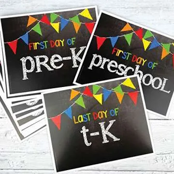 First Day & Last Day of School Photo Prop Signs, 8"x 10", Primary Flags Chalkboard, 17-Grade: Preschool, Pre-K, T-K, Kindergarten, 1st-12th Grades to College