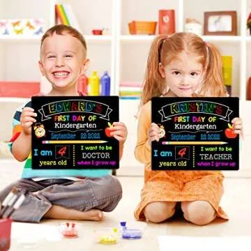 Show moreCelebrate the milestones in your child's educational journey with our First Day of School Board. This engaging chalkboard sign is perfect for commemorating the first day of Preschool, Pre-K, Kindergarten, and even up to 1st-12th Grades. Designed with vivid colors and patterns, this board not only serves as a delightful photo prop but also allows you to capture your child's growth and interests visually over the years. Its interesting design encourages kids to express what they love and dream about, making every milestone truly memorable!
