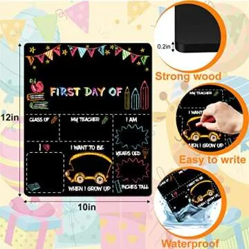 Show moreIntroducing the First & Last Day of School Chalkboard Sign—a delightful and meaningful way to celebrate your child's educational milestones! Measuring 12x10 inches, this double-sided back-to-school board is perfect for capturing those precious first-day smiles and last-day reflections, suitable for children from Preschool right through to 12th grade. Its unique design not only commemorates the beginning of a new school year but also invites kids to express themselves by writing down their name, grade, teacher, and even their hopes and dreams. With its cute and colorful style, this chalkboard is guaranteed to spark your child’s excitement for school, making it a treasured keepsake for years to come.
