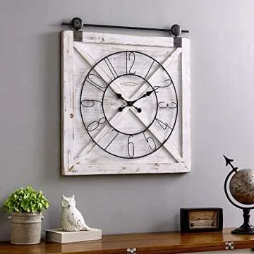 FirsTime & Co. White Farmstead Barn Door Wall Clock for Home Office, Kitchen, Living Room, Bedroom, Square, Wood and Metal, Farmhouse Decor, (27"W x 29"H inches)