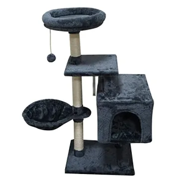 This cat tree is equipped with high-quality faux fur material which provides ultimate comfort, making it an inviting space for your furry companions. The natural sisal scratching posts encourage healthy scratching behavior while keeping their claws in peak condition. It's generously sized at 29" x 13" x 39" (74X33X99cm), offering ample space for your cats to climb and perch high, gazing down like royalty. The addition of a toy ball facilitates fun engagement, making this cat condo an ideal playground!