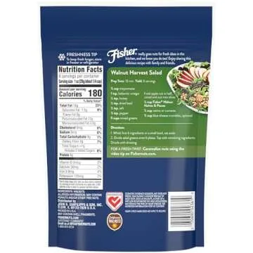 Fisher Chef's Naturals Walnut Halves & Pieces 6 oz, 100% California Unsalted Walnuts for Baking & Cooking, Topping, Resealable Bag, Great with Yogurt & Cereal, Vegan Protein, Keto Walnut Snack, 1 Pack
