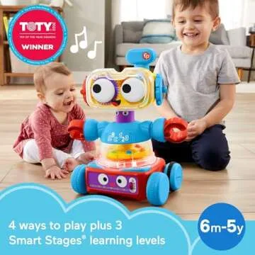 Show moreDiscover the magic of playtime with the Fisher-Price Baby Toddler & Preschool 4-in-1 Learning Bot, an innovative toy designed to grow with your child from age 6 months up to 5 years. This amazing toy provides endless fun and educational opportunities, turning learning into an engaging and interactive experience. With its adaptable 4-in-1 feature, your little one can enjoy it as a standalone activator or combine all pieces to create an exciting electronic robot buddy!