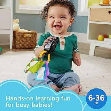 Show moreIntroducing the Fisher-Price Baby Travel Toy Laugh & Learn Play & Go Activity Keys, a whimsical and multifunctional toy designed to keep your little one engaged and learning from the very beginning! Ideal for infants aged 6 months and up, this toy combines play with essential developmental features, making it a must-have for parents on the go. With a design that embraces both functionality and fun, it includes an array of interactive elements that will captivate curious minds and help develop fine motor skills.