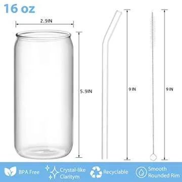 Fishinsea 12 Pcs Drinking Glasses, 18 oz Beer Can Glasses, High borosilicate Glass Cups, Iced Tea Glasses, Cola Cocktail Whiskey Wine Coffee Glasses + 12 Pcs Glass Straws + 4 Cleaning Brushes