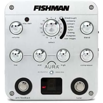 Show moreDiscover the ultimate tool for acoustic musicians with the Fishman Aura Spectrum DI Imaging Pedal. This innovative pedal not only enriches your tone but also enhances your performance with advanced technology designed for the modern player. Equipped with 128 stunning images to help you achieve your desired tone, it incorporates a high-quality direct injection (DI) for optimal sound clarity and balanced output. The integrated compressor helps manage dynamic range, ensuring that every note rings out clearly, while the built-in tuner keeps you perfectly in tune. Designed to meet the needs of professional musicians, this pedal elevates your acoustic playing to new heights, offering unparalleled versatility and control.