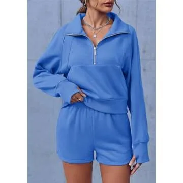 Fisoew Women's 2 Piece Outfits Half Zip Pullovers Sweatshirt and Shorts Workoout Sweat Sets Sweatsuit