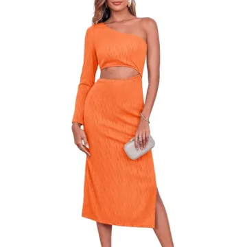 Introducing the Fisoew Women's Bodycon One Shoulder Maxi Dress, designed to accentuate your silhouette while offering a taste of elegance and edginess. This stunning dress, featuring a sexy cutout and a high split, is tailored from premium ribbed fabric that hugs your curves in all the right places. The vibrant orange hue brings a bold pop of color to your wardrobe, making it an ideal choice for summer events or night outings. Whether you're heading to a cocktail party or a romantic date...