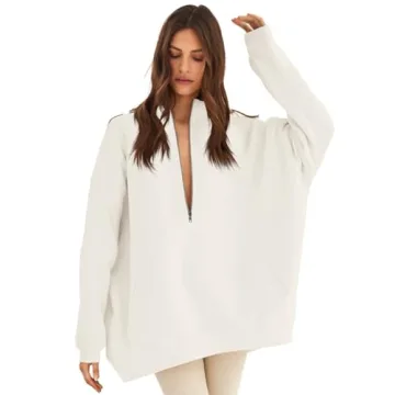 Show more Introducing the Fisoew Women's Oversized Sweatshirt, your new go-to piece for ultimate comfort and trendy style this season. Made with high-quality fabric, this pullover is designed to offer a luxurious feel against your skin, thanks to its soft, brushed interior. The trendy oversized fit provides a relaxed silhouette that is perfect for a variety of body types. The half zip design not only adds a unique touch but also allows for easy on and off, making it a practical choice for anyone on the go. With a chic stand neck that enhances warmth, this sweatshirt marries comfort with fashion seamlessly.