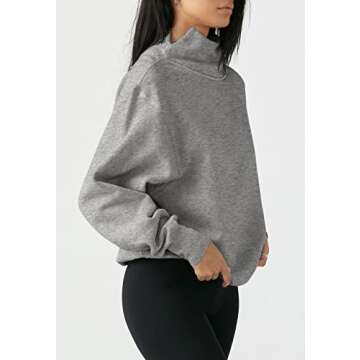 Fisoew Women's Oversized Turtleneck Sweatshirt Long Sleeve Pullover Casual Tops Grey