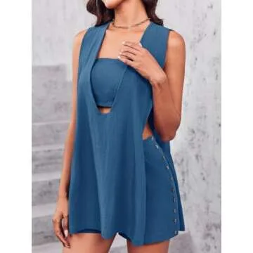 Fisoew Women's Summer 2 Piece Outfits Casual Tube Top and Overall Shorts Y2K Romper Sets