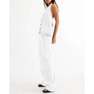 Fisoew Women's Two Piece Denim Set Button Down Backless Tank Top and Wide Leg Jeans 2 Piece Outfit Suits
