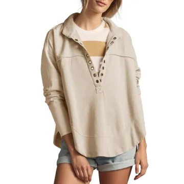 Show moreDiscover the ultimate blend of comfort and style with our Women’s Henley Tops, designed for the modern woman who appreciates effortless chic. Crafted from lightweight and breathable fabric, this versatile piece is ideal for all seasons, making it a staple in every wardrobe. The button front and oversized collared neck provide a relaxed yet trendy look, perfect for any casual occasion. With its unique arch hemline and regular length, these sweatshirts enhance your silhouette while allowing you to move freely and comfortably.