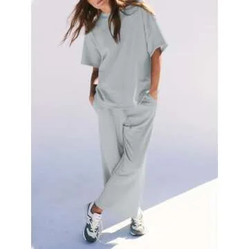 Show more Introducing the Fisoew Womens 2 Piece Outfits Workout, the ultimate combination of style and functionality for the active woman. Crafted from lightweight and breathable materials, this tracksuit is designed to ensure optimal airflow during your workouts, allowing air to circulate freely and preventing overheating. The top features a chic short sleeve design which enhances breathability, while the trendy round hemline adds a touch of femininity, creating a flattering silhouette that accentuates your curves whether you're in the gym or engaging in everyday activities.