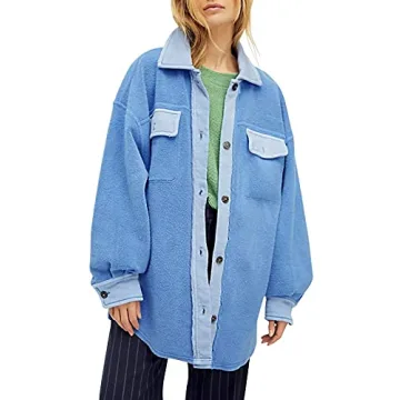 Show moreThe Fisoew Women's Oversized Long Sleeve Button Down Shirt Jacket is more than just a coat; it's the perfect combo of comfort and style tailored for the modern woman. Crafted from 100% soft polyester, this shirt jacket offers an incredibly cozy feel while maintaining effortless elegance. The oversized design features a classic lapel collar and adjustable button cuffs, making it versatile enough to layer over your favorite outfits. With a round hem and chic elbow patches, it strikes a balance between casual flair and sophisticated charm. Ideal for all seasons, this shacket is the ultimate go-to for layering – whether you're at the office, hitting the streets, or cozying up at home.