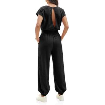 Fisoew Womens Oversized Sleeveless Loose Casual Crew Neck Jumpsuits Open Back Summer Long Pants Baggy Rompers with Pockets
