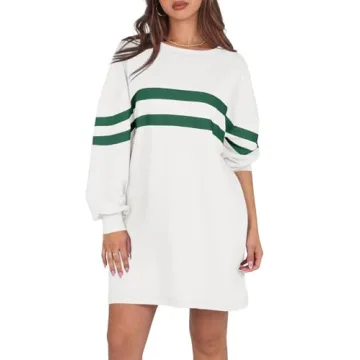 Fisoew Womens Oversized Sweatshirt Long Sleeve Crew Neck Casual Striped Pullover Dress