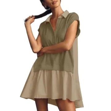 Show more Introducing the Fisoew Women's Summer Sweatshirt Dress—an exquisite blend of style, comfort, and versatility! This short sleeve V-neck dress is designed to be the epitome of fashion-forward summer wear, with its unique patchwork detailing that adds a touch of playful elegance. Made from a soft, lightweight fabric, it ensures an effortlessly breezy feel, perfect for warm days or cool summer nights. The innovative design allows it to flow gracefully, accentuating your natural beauty while providing unmatched comfort. Available in a lovely light brown hue, this dress is sure to become a staple in your closet.