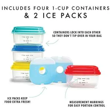 Each container holds 8 oz (1 cup) and is designed to fit neatly into lunch bags.