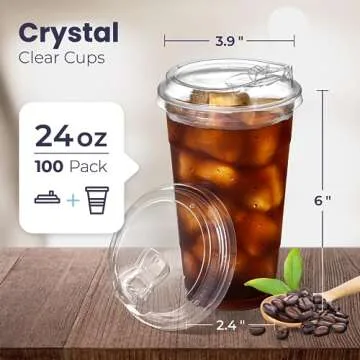Fit Meal Prep 100 Pack 24 oz Clear Plastic Cups with Strawless Sip Lids, Disposable Plastic Coffee Cups with Lids, To Go Cups for Iced Coffee, Smoothies, Soda, Party Drinks, Bubble Tea, Cold Beverage