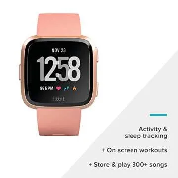 Fitbit Versa Smart Watch, Peach/Rose Gold Aluminium, One Size (S & L Bands Included), Heart Rate Monitor