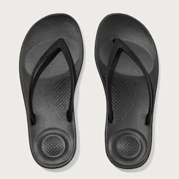 Show moreStep into a world where style meets unparalleled comfort with the FitFlop Women's iQushion Rubber Flip-Flops. Crafted in a sleek all-black design, these flip-flops are the epitome of understated elegance, making them the perfect accessory for any outfit. Whether you're heading to the beach or strolling through the city, these versatile sandals effortlessly combine timeless style with practical functionality, ensuring you look chic while keeping your feet happy.