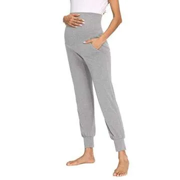 fitglam Women's Maternity Pants Over Belly Lounge Pajamas Clothes Pregnancy Must Haves Joggers with Pockets Heather Grey