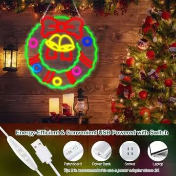 Show moreIlluminate your holiday season with the FITNATE Christmas Wreath Neon Sign! This stunning neon light features a vibrant design that combines festive elements like a cheerful bow and bell motif, instantly transforming your space into a winter wonderland. Measuring at an ideal size of 15.74 inches, it serves as a perfect eye-catching decor piece, radiating warmth and joy throughout your home. This neon sign is not just beautiful; it is also energy-efficient, running on low 5V power to ensure long-lasting performance without skyrocketing your electricity bills.