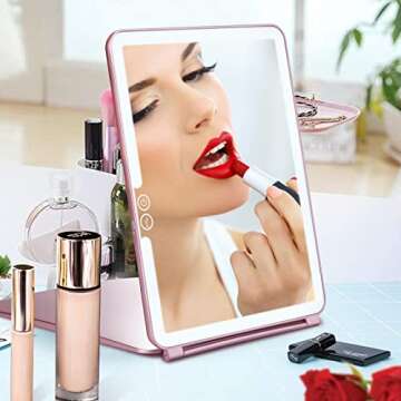 FITNATE LED Lighted Vanity Mirror with Magnetic 3X Magnifier, Touch Screen, Rechargeable Battery, Rose Gold