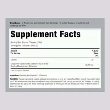 This product contains Creapure creatine and glutamine, with no added flavors or fillers.