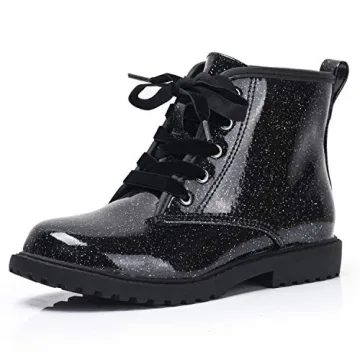 Show more Introducing the FITORY Girls Glitter Ankle Boots, the ultimate blend of style and functionality for young fashionistas! Crafted with a shiny gypsophila waterproof upper, these charming lace-up combat boots are perfect for your little ones to wear throughout the year. The thoughtful design includes a convenient side zipper and a small back pull ring, empowering kids to put these boots on and take them off with ease. Whether it's for school, casual outings, or special occasions, these boots make a bold statement while ensuring comfort with a soft interior lining that keeps feet dry and relaxed. The lightweight and durable construction provides the perfect combination for daily wear, so your kids can play and explore without compromise.
