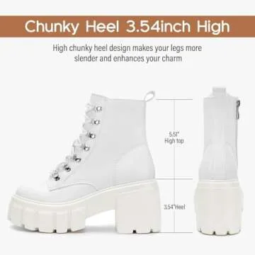 Fitory Women’s Lightweight Combat Boots with Side Zipper & High Heel