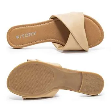 FITORY Women's Flat Sandals Fashion Slides With Soft Leather Slippers for Summer Size 7