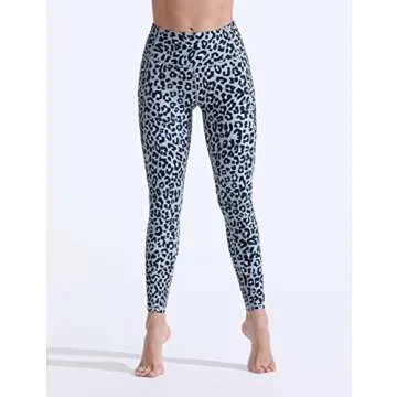 FITTIN Leopard Printed Yoga Leggings for Women with Pocket - Ankle Length Pants for Running Sports Fitness Workout Gym Grey Medium
