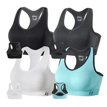 FITTIN Racerback Sports Bras 4-Pack - High Impact, Padded & Seamless