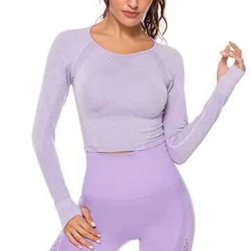 FITTOO Women's Long Sleeves Workout Crop Tops Seamless Sports Shirts Fitness Activewear Purple S