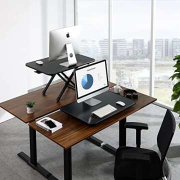 FITUEYES Height Adjustable Standing Desk Gas Spring Riser Desk Converter for Dual Monitor Sit to Stand in Seconds SD108001MB