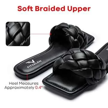 FITVALEN Braided Sandals for Women, Women's Square Open Toe Slide Sandals Comfort Woven Strap Flat Sandals for Summer Beach Daily Wear Wedding Party (Black, numeric_7)